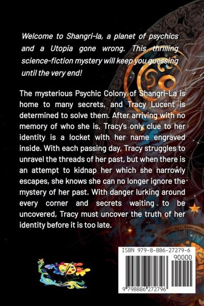 Welcome to Shangri-la, a planet of psychics and a Utopia gone wrong. This thrilling science-fiction mystery will keep you guessing until the very end! The mysterious Psychic Colony of Shangri-La is home to many secrets, and Tracy Lucent is determined to solve them. After arriving with no memory of who she is, Tracy's only clue to her identity is a locket with her name engraved inside. With each passing day, Tracy struggles to unravel the threads of her past, but when there is an attempt to kidnap her and she narrowly escapes, she knows she can no longer ignore the mystery of her past. With danger lurking around every corner, Tracy must uncover the truth of her identity before it is too late.