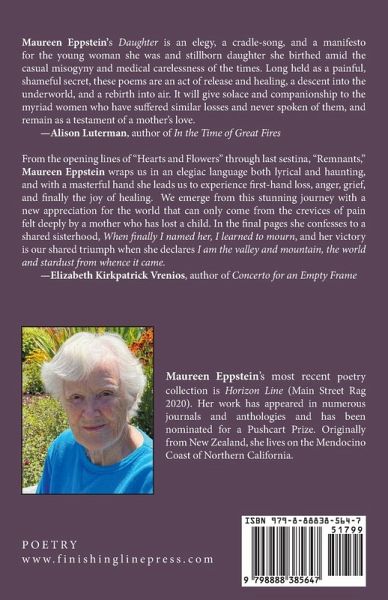 Over a span of sixty-plus years, Maureen Eppstein traces in the Daughter poems her deeply personal arc of healing from the loss of a child and her sense of connection with all living things that evolved from her experience.