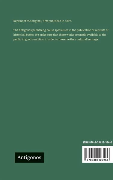 Reprint of the original, first published in 1877. The Antigonos publishing house specialises in the publication of reprints of historical books. We make sure that these works are made available to the public in good condition in order to preserve their cultural heritage.