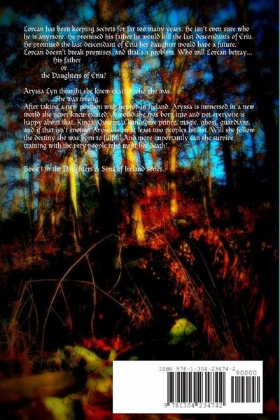 Lorcan has been keeping secrets for far too many years. He isn't even sure who he is anymore. He promised his father he would kill the last descendants of Eriu. He promised the last descendant of Eriu her daughter would have a future. Lorcan doesn't break promises, and that's a problem. Who will Lorcan betray... His father or the Daughters of Eriu? Aryssa Lyn thought she knew exactly who she was. ...She was wrong. After taking a new position with her job in Ireland, Aryssa is immersed in a new world she never knew existed. A world she was born into and not everyone is happy about that. Kings, Queens, a handsome prince, magic, ghost, guardians, and if that isn't enough Aryssa is on at least two peoples hit list. Will she follow the destiny she was born to fulfill? And more importantly can she survive training with the very people who want her death? Book 1 in the Daughters and Sons of Ireland series.
