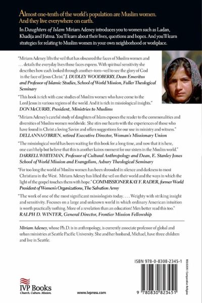 Their clothing is often distinctive. Their values are strongly held. They love their families. They comprise nearly one-tenth of the world's population, and they live everywhere around the globe. These are women of Muslim background. Many still belong to Islam, but some now belong to Christ.In Daughters of Islam Miriam Adeney introduces you to women like Ladan, Khadija and Fatma. You'll learn about their lives, questions and hopes. You'll learn how they are both representative of and unique among their Arab, Iranian, Southeast Asian and African sisters. And you'll discover what has drawn them to Christ.Adeney explores the many interwoven threads that make up daily experience for Ladan, Khadija, Fatma and their sisters, including * sexuality, singleness and marriage * children and extended family * finances * religious tradition and practice * teaching and learning styles As you enter into the lives of Ladan, Khadija and Fatma, you'll gain insight into how to relate to other women of Muslim background--and how to introduce them to Christ.
