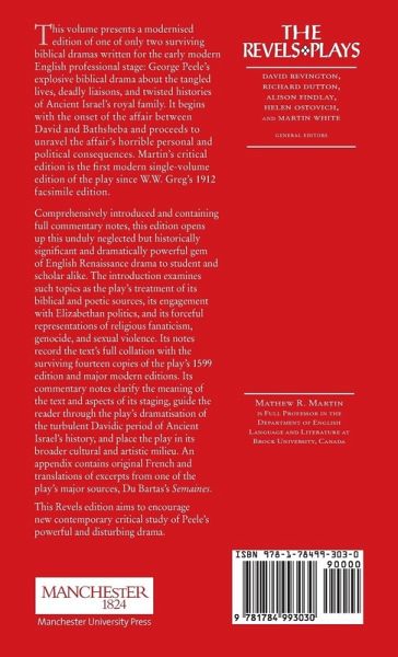 Martinâ s new critical edition of George Peeleâ s David and Bathsheba opens up this explosive drama about the turbulent and bloody Davidic period of Ancient Israelâ s history to student and scholar alike with its modernized text, full scholarly apparatus, comprehensive introduction, and commentary notes. -- .