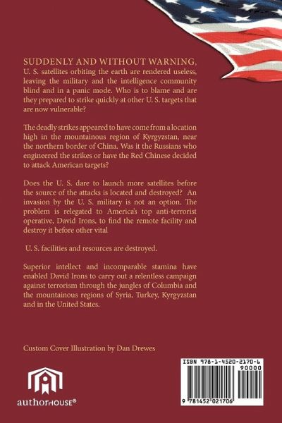 David Irons was a brilliant student graduating first in his class at Texas A&M University, where he played football. His disappointment was not being good enough to play for the Dallas Cowboys. His alternative was to go to medical school and join his father's practice as an orthopedic surgeon. Through a strange incident in the mountains of Colorado, his physical make up was changed. His friend, Scot Morgan of the Cowboys, saw him run and arranged a try out. He played for the Cowboys becoming the MVP of the National Football League in his first and only year. Having rescued the wife of Joseph Ordway, a prominent industrialist, from kidnappers, David was enticed to join the firm of Ordway Enterprises. the world's largest armament manufacturer. Persuaded by Mr. Ordway, Admiral Bonner of the National Security Agency (NSA) and a close friend of Joe Ordway, recruits David to become an under cover agent to lead the fight against global terrorism. By circumstance his first mission was to rescue his new bride who was abducted on their honeymoon in Puerto Vallarta. The culprit was the internationally sought after terrorist and drug kingpin, Ramon Estebon. David trailed Estebon through the jungles of Columbia where he found his beloved Carrie, dying from a drug over dose. The senseless murder of his wife created in David an intense hatred for Ramon Estebon and men of his ilk. Throughout the pages of David Irons American Patriot, David's passion drives him to seek out and destroy terrorists who plot against America and its resources. His love for country is evident as he campaigns for conservative ideals and against growing socialistic trends in government. He carries out covert operations in Columbia, Turkey, Syria, Kyrgyzstan, Uzbekistan and the U. S. The book is filled with action, suspense, humor, romance and passion. It is a page turner, entertaining from beginning to the end.