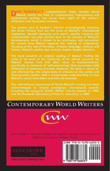 Don Randall's comprehensive study situates acclaimed author David Malouf within the field of contemporary international and psotcolonial writing, but without losing sight of the author's affiliation with Australian contexts. The book presents an original reading of Malouf, but also engages with the full body of preceding Malouf criticism.