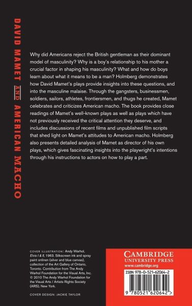 Why did Americans reject the British gentleman as their dominant model of masculinity? Why is a boy's relationship to his mother a crucial factor in shaping his masculinity? What and how do boys learn about what it means to be a man? Holmberg demonstrates how David Mamet's plays provide insights into these questions, and into the masculine malaise. Through the gangsters, businessmen, soldiers, sailors, athletes, frontiersmen and thugs he created, Mamet celebrates and criticizes American macho. The book provides close readings of Mamet's well-known plays as well as plays which have not previously received the critical attention they deserve, and includes discussions of recent films and unpublished film scripts that shed light on Mamet's attitudes to American macho. Holmberg also presents detailed analysis of Mamet as director of his own plays, which gives fascinating insights into the playwright's intentions through his instructions to actors on how to play a part.
