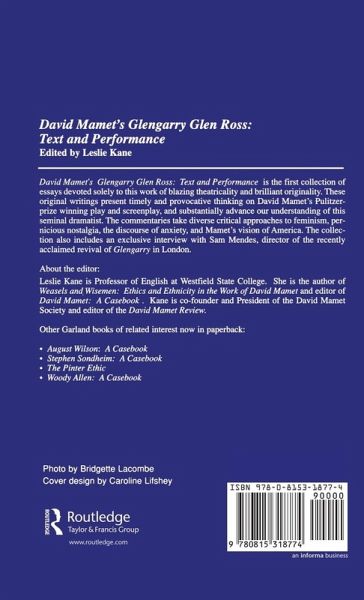 The 12 original and two classic essays offer a dialectic on performance and structure, and substantially advance our knowledge of this seminal playwright. The commentaries examine feminism, pernicious nostalgia, ethnicity, the mythological land motif, the discourse of anxiety, gendered language, and Mamet's vision of America, providing insights on the theatricality, originality, and universality of the work. Although the dominant focus is on Glengarry Glen Ross, several essays look at the play against the background of Mamet's Edmund, Reunion, and American Buffalo, whereas others find fascinating parallels in Emerson, Baudrillard, Conrad, Miller, and Churchill. The book also includes an interview with Sam Mendes, the director of the highly acclaimed 1994 revival of Glengarry Glen Ross in London, conducted specifically for this collectio. A chronology of major productions and the most current and comprehensive bibliography of secondary references from 1983-1995 complete the volume.