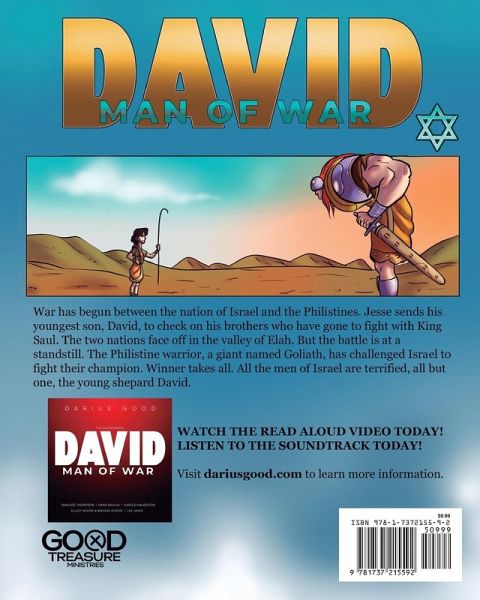 Written by Darius Good, illustrated by Ronaldo Jesus, David: Man of War is an exciting comic book drawn from King James Version of the legendary battle of David and Goliath. War has begun between the nation of Israel and the Philistines. Jesse sends his youngest son, David, to check on his brothers who have gone to fight with King Saul. The two nations face off in the valley of Elah. But the battle is at a standstill. The Philistine warrior, a giant named Goliath, has challenged Israel to fight their champion. Winner takes all. All the men of Israel are terrified, all but one, the young shepard David.