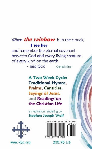 Dawn & Dusk Rainbow for Ordinary Time is a meditation rendering of 146 of the 150 Psalms, 36 Canticles, many Sayings of Jesus, 28 Scripture Readings on the Christian Life, and 47 traditional songs from the public domain, arranged for dawn and dusk (morning and evening) in a two week repeating cycle. Almost all of the Psalms and Canticles and Readings are placed on the same day of the week as in the four-week traditional cycle of the Liturgy of the Hours, weeks 1 and 3 in the first week, and weeks 2 and 4 in the second week. (Warning: If you have a very strong preference for the traditional masculine imagery for God, you will not like this meditation rendering.) Designed by a former parish priest who has prayed the Psalter for over thirty years with especially LGBTQ+Catholics in mind, these choices were made in this meditation rendering: 1. For the name YHVH, or Yahweh, the Hebrew word Adonai (ah-duh-nigh') meaning My Lord, is used. In several places the words El or Elyon or Elohim are retrieved, as is Sabaoth instead of Mighty or Hosts. 2. Following the Christian understanding of one God in the three persons of the Trinity, masculine pronouns for God are avoided. 3. Except in the traditional Lord's Prayer and doxology, rather than the Greek Father (pater) the more intimate Aramaic Abba is used (think Dad, Daddy, Papa) as in Mark 14:36. Among my family and friends, no one addresses their Daddy as Father. See also Saint Paul's use of Abba in Romans 8:15 and Galatians 4:6. 4. In an admittedly imperfect effort to pray the gospel as well as the psalms, the word enemy is most often rendered as enmity and foes as adversity. 5. Where people are referred to as evil, the emphasis is shifted to those who do the bad, or ways that are bad. 6. Since race is a human construct, and we are all members of the one human race, words such as tribe and family are used. Most of the Antiphons are Sayings of Jesus drawn from Sunday Gospel readings: In the Sunday Lectionary, the Old Testament readings have connections with the Gospel reading, and the Responsorial Psalm is a response to the Old Testament reading. This means that on any given Sunday there is a relationship between the Gospel reading and the Psalm. The antiphons were chosen based on this relationship. Some of the intercessions and petitions are drawn from Guadium et Spes, "Pastoral Constitution on the Church in the Modern World," Vatican II, 1965, paragraph 27. Stephen Joseph Wolf has prayed the Psalter for over thirty years from several different translations. Hinge Hours for Ordinary Time and Two Weeks Ordinary were previous edition of this book.