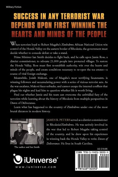 When terrorists loyal to Robert Mugabe's Zimbabwe African National Union win control of the Honde Valley on the eastern border of Rhodesia, the government must decide whether to concede defeat or take a stand. Prime Minister Ian Smith decides to fight back, and he calls upon Jamie Ross, a district commissioner, to relocate 21,000 people into protected villages. To restore the Honde Valley, Ross must first re-establish authority, win over the hearts and minds of the people, and create conditions necessary to re-open the tea estates-a source of vital foreign exchange. Meanwhile, Josiah Makoni, one of Mugabe's most terrifying lieutenants, is winning followers and accumulating power with a series of vicious terrorist acts. As the war escalates, Makoni faces setbacks, and cannot escape the internal conflicts that plague his nights and lead him to question whether life is worth living. Find out whether Jamie and his team can overcome the unbridled fury of the terrorists while learning about the history of Rhodesia from multiple perspectives in Dawn of Deliverance. Learn what has happened to the country of Zimbabwe under one of the most brutal dictators in modern history.