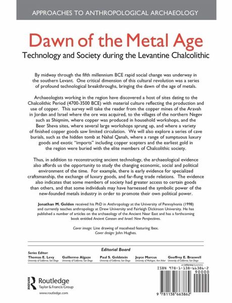 The fifth millennium BCE was a period of rapid social change. One of the key factors was the developments in technology which led to the rise of the metals industry. Archaeological finds from sites dating to the Chalcolithic period indicate the production and use of copper. 'Dawn of the Metal Age' examines a range of sites - from copper mines in Jordan and Israel to the villages of the northern Negev where copper was produced in household workshops, to a series of cave burials where a range of luxury metal goods were buried with the elite members of Chalcolithic society. Ancient technology is reconstructed from the archaeological evidence, which also illuminates the changing economic, social, religious and political environment of the time.