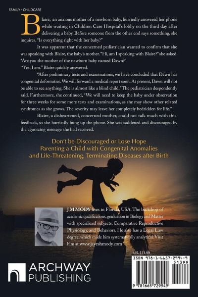 DAWN, The Doorway, Parenting: Differently-abled Children is primarily on children born with congenital anomalies and develop life-threatening diseases after birth to whom we know as special needs children, as special children. Jash would like to know them as Differently-abled children, Distinctive Children. J M Mody, Jash lives in FL, USA, and writes nonfiction and memoir books. Visit him at www.jayeshmody.com It is natural for parents to feel discouraged and think of shattered dreams when they see a child born with congenital anomalies and develop life-threatening diseases after birth. They suddenly come into a predicament to accommodate the change in their priorities. The mother may vent deep anguish, breathe irresistibly, and accepts the challenge, trusting her motherhood. As such, once any woman becomes a mother, she gets the empowerment to deal with her child's eventualities. Jash has attempted to reach parents and other concerns with genuine, enthusiastic, and passionate understanding through convincing hypotheses not to feel dismayed and lose hope. They give parents and other caretakers an unspoken, implied, indirect invitation to plunge into their world of innocence and purity and to rise with selfless love and compassion. At the same time, they also remain catalysts for parents to grab opportunities to be humane and filled with human life values. Most of the time, they stay in a blissful and happy mood. It means they reciprocate the services rendered and the devotion offered by parents and caretakers. Otherwise, also their characteristics become catalysts to restore love, care, and compassion in parents, and they can feel reaffirmation and reassurance of being caring, compassionate human beings. Parenting a child with congenital anomalies makes a home practice compassion. Mody has hypothesized that these naturally phenomenal children come with unbelievably veiled, hidden powers and have the characteristics of differently-abled children. As such, they are born with distinct, unlike drives and influences with changed genetic programs, as differently-abled. They remain connected with autonomous, self-governing, self-operating source energy systems and their arranged networks. They take birth in the family to inspire parents and other dedicated souls to join as teammates to experience transformation and transcend from within for a better life, towards the doorway for the Dawn. Jash modestly appeals not to show gloomy dejection towards differently-abled children, inhibiting their unique characteristics of being catalysts and activating the heart-core emotions of their parents and other caretakers. It may disrupt their working as navigators. It is to get an endorsement of human beings' reaffirmation and reassurances of being humane. Trigging and enhancing the process is essential; otherwise, they will turn uninterested, downhearted, and apathetic. Consequently, the beautiful process of inspiring parents and other teammates to be humane through the autonomous, sovereign system will get repressed. The aim is to motivate and pursue parents to take special care without feeling discouraged, disheartened, and losing hope while parenting such children. It is essential for parents' minds and hearts to develop optimism by understanding the awaited purpose of a child taking birth in a family. It is to appropriately navigate and boost parents and steadfast immediate family members to have positive attitudes by reassuring their human values to alleviate the child's condition and to transpire, arise, and ensure a transformed life.