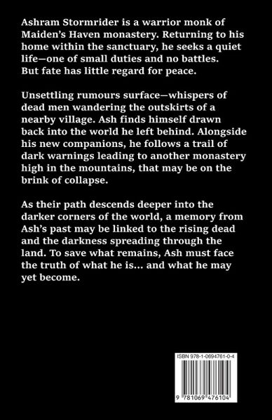 Ashram Stormrider is a warrior monk of Maiden's Haven monastery. Returning to his home within the sanctuary, he seeks a quiet life-one of small duties and no battles. But fate has little regard for peace. Unsettling rumours surface-whispers of dead men wandering the outskirts of a nearby village. Ash finds himself drawn back into the world he left behind. Alongside his new companions, he follows a trail of dark warnings leading to another monastery high in the mountains, that may be on the brink of collapse. As their path descends deeper into the darker corners of the world, a memory from Ash's past may be linked to the rising dead and the darkness spreading through the land. To save what remains, Ash must face the truth of what he is... and what he may yet become.
