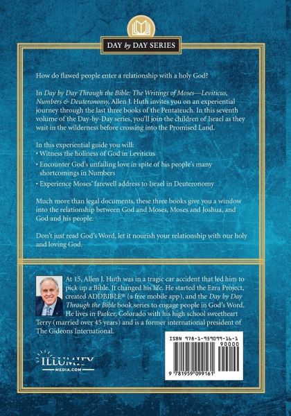 How do flawed people enter a relationship with a holy God? In Day by Day Through the Bible: The Writings of Moses-Leviticus, Numbers & Deuteronomy, Allen J. Huth invites you on an experiential journey through the last three books of the Pentateuch. In this seventh volume of the Day-by-Day series, you'll join the children of Israel as they wait in the wilderness before crossing into the Promised Land. In this experiential guide you will: ¿ Witness the holiness of God in Leviticus ¿ Encounter God's unfailing love in spite of his people's many shortcomings in Numbers ¿ Experience Moses' farewell address to Israel in Deuteronomy Much more than legal documents, these three books give you a window into the relationship between God and Moses, Moses and Joshua, and God and his people. Don't just read God's Word, let it nourish your relationship with our holy and loving God.