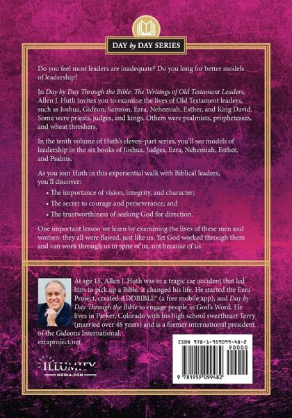Do you feel most leaders are inadequate? Do you long for better models of leadership? In Day by Day Through the Bible: The Writings of Old Testament Leaders, Allen J. Huth invites you to examine the lives of Old Testament leaders, such as Joshua, Gideon, Samson, Ezra, Nehemiah, Esther, and King David. Some were priests, judges, and kings. Others were psalmists, prophetesses, and wheat thrashers. In the tenth volume of Huth's eleven-part series, you'll see models of leadership in the six books of Joshua, Judges, Ezra, Nehemiah, Esther, and Psalms. As you join Huth in this experiential walk with Biblical leaders, you'll discover: ¿ The importance of vision, integrity, and character; ¿ The secret to courage and perseverance; and ¿ The trustworthiness of seeking God for direction. One important lesson we learn by examining the lives of these men and women: they all were flawed, just like us. Yet God worked through them and can work through us in spite of us, not because of us.