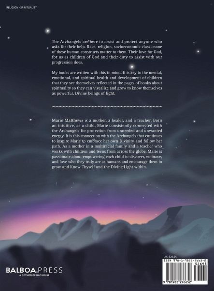 The Archangels are here to assist and protect anyone who asks for their help. Race, religion, socioeconomic class-none of these human constructs matter to them. Their love for God, for us as children of God and their duty to assist with our progression does. My books are written with this in mind. It is key to the mental, emotional, and spiritual health and development of children that they see themselves reflected in the pages of books about spirituality so they can visualize and grow to know themselves as powerful, Divine beings of light.