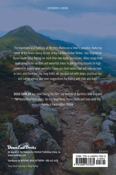 The mountains and foothills of western Maine are a hiker's paradise, featuring some of the finest hiking terrain in the Eastern United States. Join Registered Maine Guide Doug Dunlap on more than two dozen excursions. Hikes range from quiet stream-side rambles and waterfall hikes to gut-busting ascents to high peaks with breezy open summits. There are short walks that will take an hour or less, and there are day-long treks, all rounded out with maps, practical tips and safety advice, and even suggestions for hiking with kids and dogs.