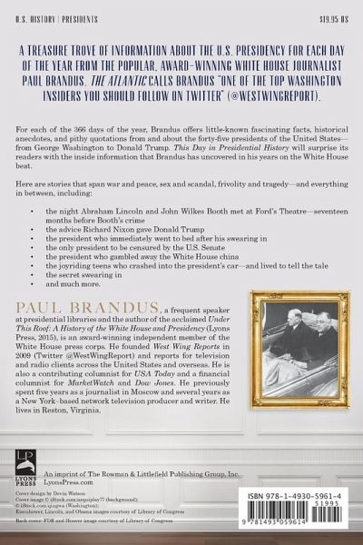 For each of the 366 days of the year, Paul Brandus of West Wing Reports offers little-known, fascinating facts; historical anecdotes; and pithy quotes from the 45 presidents of the United States. This Day in Presidential History will surprise its readers with the inside information that Brandus has uncovered in his years on the White House beat.