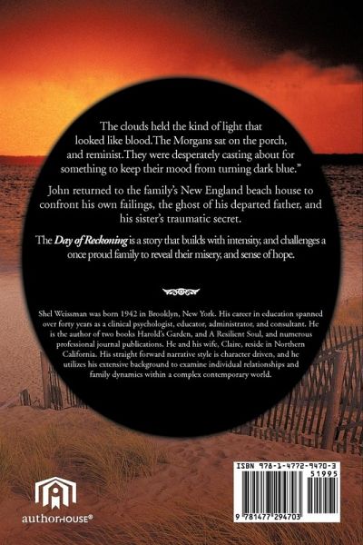 The clouds held the kind of light that looked like blood.The Morgans sat on the porch, and reminist.They were desperately casting about for something to keep their mood from turning dark blue." John returned to the family's New England beach house to confront his own failings, the ghost of his departed father, and his sister's traumatic secret. The Day of Reckoning is a story that builds with intensity, and challenges a once proud family to reveal their misery, and sense of hope.