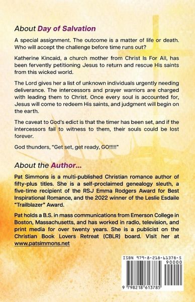 A special assignment. The outcome is a matter of life or death. Who will accept the challenge before time runs out? Katherine Kincaid, a church mother from Christ Is For All, has been fervently petitioning Jesus to return and rescue His saints from this wicked world. The Lord gives her a list of unknown individuals urgently needing deliverance. The intercessors and prayer warriors are charged with leading them to Christ. Once every soul is accounted for, Jesus will come to redeem His saints, and judgment will begin on the earth. The caveat to God's edict is that the timer has been set, and if…mehr