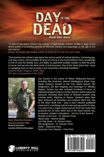 "In Day of the Dead, Gordon has written a frighteningly realistic thriller, a page-turner which paints a compelling portrait of Mid-East combat and espionage, in the age of ISIS and Hamas." Steven Pressfield, Best-Selling author of Gates of Fire and The Lion's Gate "Dan Gordon has crafted a tale about the vicious world of radical Islamists, criminal gangs, and their victims. His incredible 40 years of service in the Israel Defense Force, knowledge of the US and the Middle East, and ability to spell-bind enables readers to feel the pulse of terror and see into the dark minds of evil incarnate. Day of the Dead: Book One - Gaza is a gripping story as real as today's and tomorrow's shocking headlines." General Robert Magnus, USMC (Ret) 30th Asst Commandant of the USMC Dan Gordon is the author of fifteen Hollywood features, including The Hurricane, (Denzel Washington) Wyatt Earp, (Kevin Costner), Murder in the First, (Kevin Bacon), The Assignment, (Sir Ben Kingsley) and Passenger 57 (Wesley Snipes). Gordon has also amassed hundreds of hours of television programming as a writer, director and/or executive producer, including head writer of Michael Landon's long running series, Highway to Heaven. Gordon's plays have been produced on Broadway and London's West End. Day of the Dead: Book One - Gaza is Dan's seventh published novel and is a terrifying look into the warring world of today. It is soon to be a major motion picture from the studio that produced Act of Valor. With Day of the Dead Gordon has, in essence, created a new genre.... not Sci- fi, but Terror-fi. Murder in the First - St. Martin's Press Wyatt Earp - Warner Books Just Play Dead - St. Martin's Press The Assignment - St. Martin's Press Davin - Delacorte Press Postcards From Heaven - Free Press