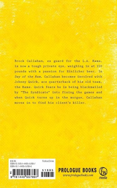 Brock Callahan, ex guard for the L.A. Rams is now a tough private eye, weighing in at 220 pounds with a passion for Einlicher beer. In Day of the Ram Callahan becomes involved with Johnny Quirk, ace quarterback of his old team, the Rams. Quirk fears he is being blackmailed by "The Syndicate" into fixing the games and when Quirk turns up in the morgue, Callahan moves in to find his client's killer.