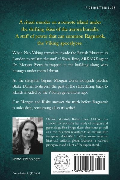 A ritual murder on a remote island under the shifting skies of the aurora borealis. A staff of power that can summon Ragnarok, the Viking apocalypse. When Neo-Viking terrorists invade the British Museum in London to reclaim the staff of Skara Brae, ARKANE agent Dr. Morgan Sierra is trapped in the building along with hostages under mortal threat. As the slaughter begins, Morgan works alongside reluctant psychic Blake Daniel to discern the past of the staff, dating back to islands invaded by the Vikings generations ago. Can Morgan and Blake uncover the truth before Ragnarok is unleashed, consuming all in its wake? Day of the Vikings is a fast-paced, action adventure thriller set in the British Museum, the British Library and the islands of Orkney, Lindisfarne and Iona. Set in the present day, it resonates with the history and myth of the Vikings. Day of the Vikings features Dr. Morgan Sierra from the ARKANE thrillers, and Blake Daniel from the London Crime Thriller series, but it is also a stand-alone novella that can be read and enjoyed separately.