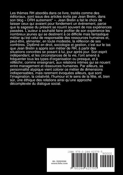 Les thèmes RH abordés dans ce livre, traités comme des éditoriaux, sont issus des articles écrits par Jean Bretin, dans son blog DRH autrement* . L'auteur a souhaité faire profiter de son expérience les nombreux jeunes qui se destinent à ce difficile mais fantastique métier qu'est celui de responsable des ressources humaines. Diplômé en droit, sociologie et gestion, c'est sur le tas que Jean Bretin a appris son métier de RH, à partir des situations concrètes se posant à lui, jour après jour. Son esprit indépendant, et les circonstances de la vie, l'ont amené à fréquenter tous les types d'organisation ou presque, et à réfléchir, comme enseignant, aux relations intimes qui se nouent entre management et ressources humaines. Par ailleurs, sa personnalité atypique vient colorer ce métier de dimensions indispensables, mais rarement évoquées ailleurs sans oublier l'éthique des relations ainsi qu'une approche décomplexée du dialogue social.