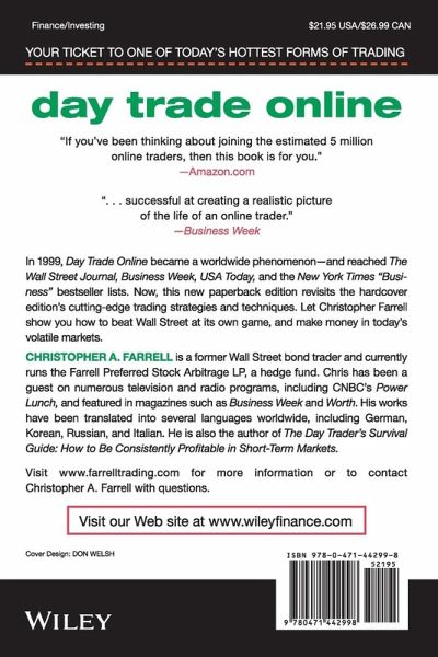 Durch die geringen Kosten im Online Trading ist ein ganz neuer Anlegertyp entstanden. So, wie es früher nur den mächtigsten Brokerhäusern und Investmentbanken an der Wall Street vorbehalten war, bestreiten jetzt die Online Day Trader ihren Lebensunterhalt mit dem Kauf und Verkauf von Aktien über das Internet. "Day Trade Online" ist ein praktischer Leitfaden, der umfassend und erschöpfend erläutert, wie man vom Online Trading leben kann. Dabei behandelt Autor Christopher Farrell das komplette Spektrum, angefangen bei den Grundlagen bis hin zu tiefgreifenden Strategien für den Handel mit börsennotierten Aktien und Freiverkehrswerten. Mit diesem Buch können sich Neulinge auf diesem Gebiet schnell einen Überblick verschaffen und sich rasch in die Grundlagen des Online Daytrading einarbeiten. Dabei werden alle Aspekte des expandierenden Onlinehandels berücksichtigt - ob typische Gefahrenquellen und Fallstricke, oder detaillierte Analysen, welche Handelstechniken funktionieren und welche nicht. Mit einer Fülle praktischer Tipps und Strategien für erfolgreiches Online Trading.