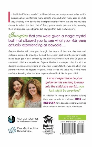 Author's have a website that showcases not only Daycare Diaries but will give advice, tips, and offer daily education to parents regarding their childcare needs. They also have are active on Facebook and Twitter, addressing parent concerns and starting conversations based on pertinent topics related to daycare. They are posting a series of informative videos on YOU TUBE to educate the public and to bring awareness and education where we feel it is lacking. Scheduling speaking engagements at various forums to address the topics they uncover in Daycare Diaries and a book tour across many…mehr
