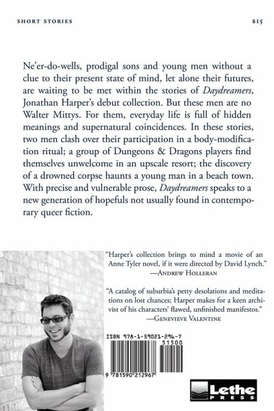 Ne'er-do-wells, prodigal sons, and young men without so much as a clue to their present state of mind let alone their futures are waiting to be met in the stories within Daydreamers, Jonathan Harper's debut collection. But these men are not Walter Mittys-everyday life refuses to allow them languor. Whether it be the roll of the dice in a Dungeons & Dragons game played in a hostile, rural bar, the lure of body modification and being suspended in front of a crowd, or discovering a body on the beach, the rough edges of each young man cannot help but be noticed, even admired. And once a young man is admired, he needs to decide whether or not to awaken from his daydreams.