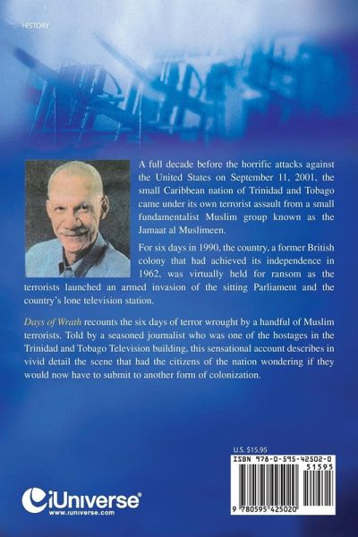 A full decade before the horrific attacks against the United States on September 11, 2001, the small Caribbean nation of Trinidad and Tobago came under its own terrorist assault from a small fundamentalist Muslim group known as the Jamaat al Muslimeen. For six days in 1990, the country, a former British colony that had achieved its independence in 1962, was virtually held for ransom as the terrorists launched an armed invasion of the sitting Parliament and the country's lone television station. Days of Wrath recounts the six days of terror wrought by a handful of Muslim terrorists. Told by a seasoned journalist who was one of the hostages in the Trinidad and Tobago Television building, this sensational account describes in vivid detail the scene that had the citizens of the nation wondering if they would now have to submit to another form of colonization.