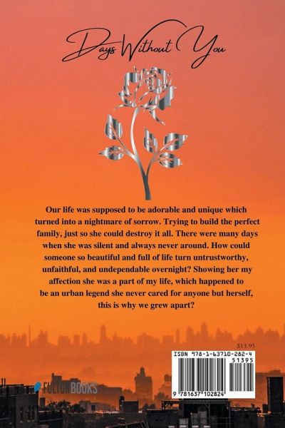 Our life was supposed to be adorable and unique which turned into a dream of sorrow. Trying to build the perfect family, just so she could destroy it all. There were many days when she was silent and always never around. How could someone so beautiful and full of life turn untrustworthy, unfaithful and undependable overnight? Showing her my affection she was apart of my life, which happened to be urban legend she never cared for anyone but herself, this is why we grow apart?