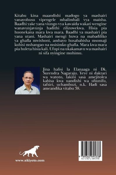 Kitabu kina maandishi madogo ya mashairi yanayohusu vipengele mbalimbali vya maisha. Baadhi yake yana viungo vya kawaida wakati wengine wanavunjavunja hadithi zilizowekwa. Hisia pia huonekana mara kwa mara. Baadhi ya mashairi pia yana utani. Mashairi mengi huwa na mabadiliko ya ghafla mwishoni, ambayo husababisha msomaji kuhisi mshangao na msisimko ghafla. Mara kwa mara pia huleta hisia kali. Ufupi na ukakamavu wa mashairi ni sifa nyingine muhimu.