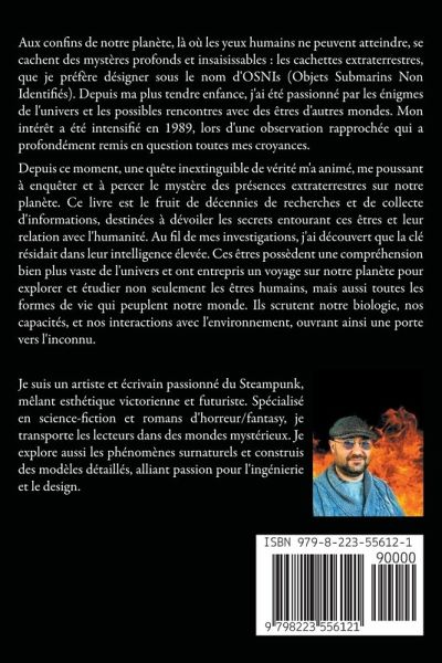 **Présentation 1 : Les Mystères des Cercles de Récolte et des OVNI** Bienvenue dans un monde de mystères inexplorés, où les limites de notre compréhension sont mises à l'épreuve. Je partage une observation personnelle en 1989 qui a ébranlé ses croyances et l'a poussé à se plonger dans des décennies de recherche approfondie. Ce livre vous emmène dans un voyage à la rencontre de ces êtres intelligents venus d'ailleurs, étudiant notre planète et ses habitants. Découvrez comment leur compréhension vaste de l'univers les pousse à explorer et à interagir avec notre monde. Le fascinante rencontre entre des êtres extraterrestres et les énigmatiques cercles de récolte, communément appelés "crop circles" en anglais, Radiation? . Pendant des décennies, ces formations ont captivé l'attention, laissant certains perplexes devant leur origine naturelle et d'autres songeant à une intervention extraterrestre. Osez imaginer que ces cercles cachent en réalité des messages codés ou des signaux émanant de civilisations venues d'au-delà des étoiles. OSNIs : Les gardiens de l'énigme cosmique - Aux confins de notre planète, dans des endroits inaccessibles aux yeux humains et cachés dans les recoins les plus reculés de la Terre, se trouve un énigme encore plus profond et mystérieux : les cachettes extraterrestres, ou comme je préfère les appeler, les OSNIs (Objets Submarins Non Identifiés) Explorez l'univers fascinant des Objets Submarins Non Identifiés (OSNIs) dans cet exposé captivant. **Présentation 2 : Communication au-Delà de Notre Compréhension** Plongez au cœur d'un univers captivant où la communication transcende les frontières de notre compréhension. Découvrez l'extraordinaire concept de constructions enigmatiques, où ces êtres interprètent nos langues et établissent des connexions à un niveau profondément mystérieux. Mais ce n'est pas tout. Préparez-vous à être confrontés à des messages cryptés, des énigmes destinées à évaluer notre intelligence et nos progrès technologiques. Sommes-nous prêts à relever ce défi et à décoder leurs messages, prouvant ainsi notre valeur en tant que civilisation ? **Présentation 3 : La Quête de Ressources Extraterrestres** Explorez les motivations intrigantes de ces visiteurs d'autres mondes, alors qu'ils partent en quête de ressources rares telles que l'uranium et le plutonium. Pourraient-ils exploiter nos richesses pour combler leurs propres besoins ? Cette question captivante nous emmène au-delà des frontières de notre planète pour révéler les intentions dissimulées de ces êtres venus d'ailleurs. **Présentation 4 : OVNI : Des Observations Célestes Énigmatiques** Plongez dans le monde fascinant des Objets Volants Non Identifiés (OVNI), ces phénomènes aériens qui continuent de défier toute explication concluante. Ces observations mystérieuses ont suscité un intérêt grandissan
