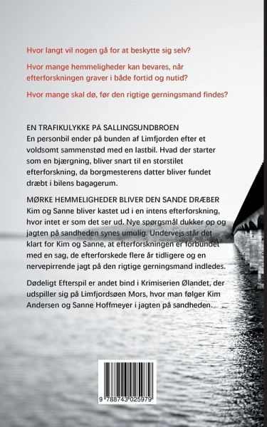 En personbil ender på bunden af Limfjorden efter et voldsomt sammenstød med en lastbil på Sallingsundbroen. Hvad der starter som en bjærgning, bliver snart en storstilet efterforskning, da borgmesterens datter bliver fundet dræbt i bilens bagagerum. Kim og Sanne bliver kastet ud i en intens efterforskning, hvor intet er som det ser ud. Nye spørgsmål dukker op og jagten på sandheden synes umulig. Undervejs står det klart for Kim og Sanne, at efterforskningen er forbundet med en sag, de efterforskede flere år tidligere og en nervepirrende jagt på den rigtige gerningsmand indledes. "Dødeligt Efterspil" er andet bind i Krimiserien Ølandet, der udspiller sig på Limfjordsøen Mors, hvor man følger Kim Andersen og Sanne Hoffmeyer i jagten på Sandheden.