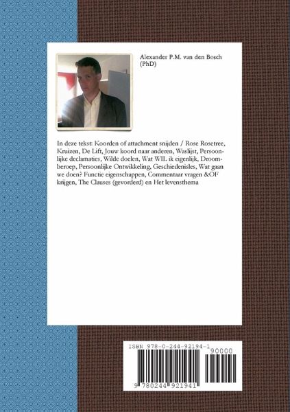 In dit boek: Koorden of attachment snijden / Rose Rosetree, Kruizen, De Lift, Jouw koord naar anderen, je Waslijst, Persoonlijke declamaties, Wilde doelen, Wat WIL ik eigenlijk, Droomberoep, Persoonlijke Ontwikkeling, Geschiedenisles, Wat gaan we doen? Functie eigenschappen, Commentaar vragen &OF krijgen, The Clauses (gevorderd) en Het levensthema