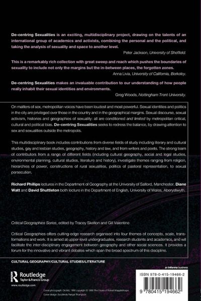 This book offers an exploration of material and metaphysical geographies of sexualities outside the urban arena. The 'marginal' sexualities are furthest from the movements that seek to liberate them, and sexual subjects are least stable in these marginal regions. It includes international contributions from a wide range of disciplines including: literary and cultural studies, geography, history, law and lesbian and gay studies. The contributors are: Richard Phillips, Diane Watt, Alan Sinfield, Dennis Altman, Kate Chedgzoy, Barry Langford, David Bell, David Shuttleton, Anira Rowanchild, Sue William, William Spurlin, Angelina R. Wilson, Brent Ingram, Lynn Pearce, Vincent Quinn and Edwin MorganThis book explores sexualities and sexual experiences in a variety of rural and marginal spaces, with contributions from a wide range of disciplines.