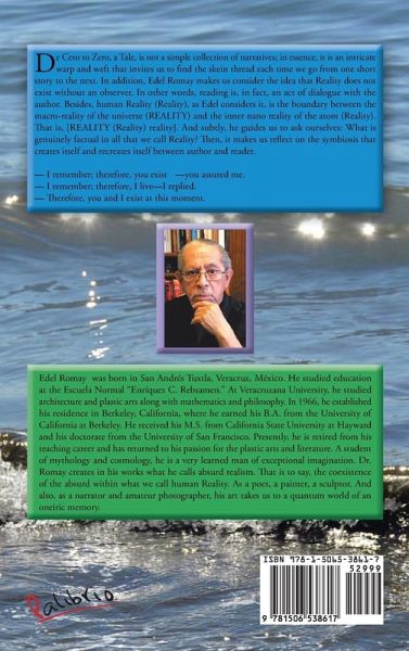 De Cero to Zero, a Tale, is not a simple collection of narratives; in essence, it is an intricate warp and weft that invites us to find the skein thread each time we go from one short story to the next. In addition, Edel Romay makes us consider the idea that Reality does not exist without an observer. In other words, reading is, in fact, an act of dialogue with the author. Besides, human Reality (Reality), as Edel considers it, is the boundary between the macro-reality of the universe (REALITY) and the inner nano reality of the atom (Reality). That is, [REALITY (Reality) reality]. And subtly, he guides us to ask ourselves: What is genuinely factual in all that we call Reality? Then, it makes us reflect on the symbiosis that creates itself and recreates itself between author and reader. - I remember; therefore, you exist -you assured me. - I remember; therefore, I live-I replied. - Therefore, you and I exist at this moment.