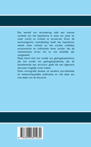 Een wereld van verandering stelt een nieuwe variëteit van het kapitalisme in staat om meer en meer macht en invloed te verwerven. Door de technologische ontwikkeling heeft het kapitalisme steeds meer invloed op het sociale, politieke, economische en individuele leven zonder dat de mechanismen ervan tot nu toe duidelijk zijn vastgesteld. Deze kloof sluit het model van gedragskapitalisme, dat het model van gedragskapitalisme, dat de benaderende een structuur geeft die een algemene discussie mogelijk moet maken. Deze monografie bestaat uit eerdere journalistieke en wetenschappelijke publicaties en vult deze aan met delen van de discussie.