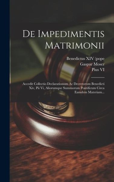 This work is a collection of papal pronouncements regarding the impediments to marriage. It was written by Benedict XIV, and includes commentary by Gaspar Moser and Pius VI. The book discusses the various obstacles that can impede a marriage from taking place, as well as the procedures for annulment. This is a valuable resource for scholars of canon law and the history of marriage in the Catholic Church. This work has been selected by scholars as being culturally important, and is part of the knowledge base of civilization as we know it. This work is in the "public domain in the United States of America, and possibly other nations. Within the United States, you may freely copy and distribute this work, as no entity (individual or corporate) has a copyright on the body of the work. Scholars believe, and we concur, that this work is important enough to be preserved, reproduced, and made generally available to the public. We appreciate your support of the preservation process, and thank you for being an important part of keeping this knowledge alive and relevant.