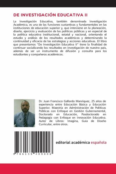 La Investigación Educativa, también denominada Investigación Académica, es una de las funciones sustantivas y fundamentales en las instituciones de educación superior y, que interviene en la planeación, diseño, ejercicio y evaluación de las políticas públicas y en especial de la política educativa institucional, estatal y nacional, orientando el estudio y análisis de los resultados académicos y determinando la continuidad y eficacia de las estrategias y acciones educativas. El libro que presentamos "De Investigación Educativa II" tiene la finalidad de continuar socializando los resultados en investigación de nuestro país, además de ser un instrumento de difusión y consulta para los estudiantes y compañeros académicos.