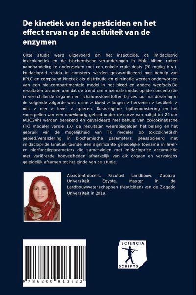 Onze studie werd uitgevoerd om het insecticide, de imidacloprid toxicokinetiek en de biochemische veranderingen in Male Albino ratten nabehandeling te onderzoeken met een enkele orale dosis (20 mg/kg b.w.). Imidacloprid residu in monsters werden gekwantificeerd met behulp van HPLC en compound kinetiek als distributie en eliminatie werden onderworpen aan een niet-compartimentele model in het bloed en andere weefsels.De resultaten toonden aan dat de trend van maximale imidaclopride concentratie in verschillende organen en lichaamsvloeistoffen bij zes uur na dosering in de volgende volgorde was: urine > bloed > longen > hersenen > testikels > milt > nier > lever > spieren. Dosisregime, tijdbemonstering en het voorspellen van een nauwkeurig gebied onder de curve van nultijd tot 24 uur (AUC24h) werden berekend en gevalideerd met behulp van toxicokinetische (TK) modeler versie 1.0; de resultaten weerspiegelden het belang en het gebruik van de mogelijkheid van TK modeler op toxicokinetisch gebied.Verandering in biochemische parameters geassocieerd met imidaclopride kinetiek toonde een significante geleidelijke toename in lever- en nierfunctieparameters die samenvielen met imidaclopride accumulatie met variërende hoeveelheden afhankelijk van elk orgaan en vervolgens geleidelijk afnamen tot het einde van de studie.