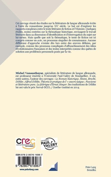 Michel Vanoosthuyse, spécialiste de littérature de langue allemande, est professeur émérite à l¿Université Paul-Valéry de Montpellier. Il est, entre autres, l¿auteur des ouvrages : Le Roman historique. Mann, Brecht, Döblin ; Alfred Döblin. Théorie et pratique de l¿« uvre épique ; Fascisme et littérature pure. La fabrique d¿Ernst Jünger. Ses traductions de Döblin lui ont valu le prix Nerval-SGDL / Goethe-Institut en 2014.