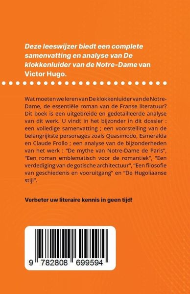 Wat moeten we leren van De klokkenluider van de Notre-Dame, de essentiële roman van de Franse literatuur? Dit boek is een uitgebreide en gedetailleerde analyse van dit werk. U vindt in het bijzonder in dit dossier : - Een volledige samenvatting - Een voorstelling van de belangrijkste personages zoals Quasimodo, Esmeralda en Claude Frollo - Een analyse van de bijzonderheden van het werk: "De mythe van Notre-Dame de Paris", "Een roman emblematisch voor de romantiek", "Een verdediging van de gotische architectuur", "Een filosofie van geschiedenis en vooruitgang" en "De Hugoliaanse stijl". Een referentie-analyse om snel de betekenis van het werk te begrijpen.