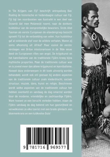 In "De Krijgers van Fiji" beschrijft antropoloog Bas Roeling de historische en hedendaagse cultuur van Fiji. Fiji ligt ten noordoosten van Australië in een deel van Oceanië dat men Melanesië noemt, vernoemd naar de donkere huidskleur van de oorspronkelijke bewoners. Sinds Abel Tasman als eerste Europeaan de eilandengroep bezocht spreekt Fiji tot de verbeelding van velen. Hun huidskleur gaf al voldoende stof voor de wildste verhalen. Waren zij soms afkomstig uit Afrika? Maar vooral de eerste verslagen van Britse missionarissen in de 19de eeuw deed de Europeanen rillen van angst. De krijgskunst en het kannibalisme van de traditionele Fijiërs kreeg bijna mythische proporties. Maar de traditionele cultuur was en is zoveel meer dan dit alleen. Hoewel krijgskunst en kannibalisme uitgebreid aan bod komen in dit boek, wordt daarom ook stil gestaan bij andere aspecten van de traditionele cultuur zoals klederdracht, sociale structuur, muziek, dans, kunst en religie. Daarnaast wordt duidelijk welke aspecten van de traditionele cultuur het hebben overleefd en vandaag de dag worden omarmd door de moderne vriendelijke en zachtaardige Fijiërs. Want hoewel ze een berucht verleden hebben staan de Fijiërs vandaag de dag bekend om hun gastvrijheid en verwelkomen ze elke toerist met een brede glimlach, een bloemenkrans en een luidkeelse Bula!