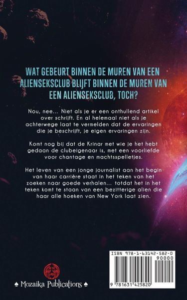 Wat gebeurt binnen de muren van een alienseksclub blijft binnen de muren van een alienseksclub, toch? Nou, nee... Niet als je er een onthullend artikel over schrijft. En al helemaal niet als je achterwege laat te vermelden dat de ervaringen die je beschrijft, je eigen ervaringen zijn. Komt nog bij dat de Krinar met wie je het hebt gedaan de clubeigenaar is, met een voorliefde voor chantage en machtsspelletjes. Het leven van een jonge journalist aan het begin van haar carrière staat in het teken van het zoeken naar goede verhalen... totdat het in het teken komt te staan van een bezitterige alien die haar alle hoeken van New York laat zien.