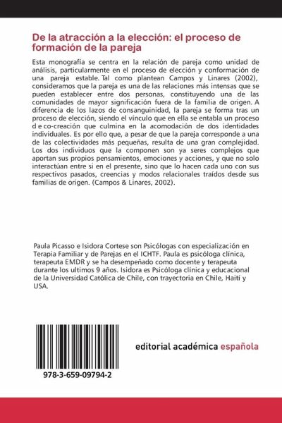 Esta monografía se centra en la relación de pareja como unidad de análisis, particularmente en el proceso de elección y conformación de una pareja estable. Tal como plantean Campos y Linares (2002), consideramos que la pareja es una de las relaciones más intensas que se pueden establecer entre dos personas, constituyendo una de las comunidades de mayor significación fuera de la familia de origen. A diferencia de los lazos de consanguinidad, la pareja se forma tras un proceso de elección, siendo el vínculo que en ella se entabla un proceso de co-creación que culmina en la acomodación de dos identidades individuales. Es por ello que, a pesar de que la pareja corresponde a una de las colectividades más pequeñas, resulta de una gran complejidad. Los dos individuos que la componen son ya seres complejos que aportan sus propios pensamientos, emociones y acciones, y que no solo interactúan entre si en el presente, sino que lo hacen cada uno con sus respectivos pasados, creencias y modos relacionales traídos desde sus familias de origen. (Campos & Linares, 2002).