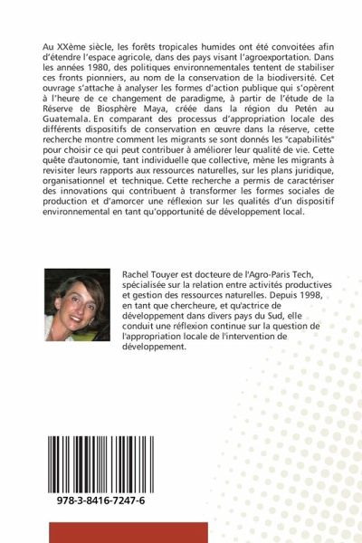 Au XXème siècle, les forêts tropicales humides ont été convoitées afin d'étendre l'espace agricole, dans des pays visant l'agroexportation. Dans les années 1980, des politiques environnementales tentent de stabiliser ces fronts pionniers, au nom de la conservation de la biodiversité. Cet ouvrage s'attache à analyser les formes d'action publique qui s'opèrent à l'heure de ce changement de paradigme, à partir de l'étude de la Réserve de Biosphère Maya, créée dans la région du Petén au Guatemala. En comparant des processus d'appropriation locale des différents dispositifs de conservation en oeuvre dans la réserve, cette recherche montre comment les migrants se sont donnés les "capabilités" pour choisir ce qui peut contribuer à améliorer leur qualité de vie. Cette quête d'autonomie, tant individuelle que collective, mène les migrants à revisiter leurs rapports aux ressources naturelles, sur les plans juridique, organisationnel et technique. Cette recherche a permis de caractériser des innovations qui contribuent à transformer les formes sociales de production et d'amorcer une réflexion sur les qualités d'un dispositif environnemental en tant qu'opportunité de développement local.