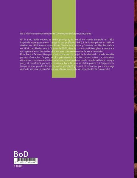 De la réalité du monde sensible est une oeuvre écrite par Jean Jaurès.On le sait, Jaurès soutint sa thèse principale, La réalité du monde sensible, en 1892. Imprimée auparavant selon l'usage du temps (Alcan, 1891), il la fit réimprimer en 1894 et rééditer en 1902, toujours chez Alcan. Elle ne sera reprise qu'une fois par Max Bonnafous en 1937 chez Rieder, avant l'édition de 2000, dans le tome trois Philosopher à trente ans qui regroupe aussi des textes plus anciens, comme ses cours de jeune normalien.Pour Annick Taburet-Wajngart, c'est moins net. Le projet de La réalité du monde sensible permet néanmoins d'approcher plus précisément l'intention de son auteur : « Je voudrais démontrer contrairement à toutes les doctrines idéalistes que le monde extérieur, quoique perçu et transformé par notre cerveau, a hors de nous sa réalité propre (...) l'espace et le temps ne sont pas des formes de notre sensibilité groupant et ordonnant pour son usage des faits sans aucun lien réel mais des formes naturelles et essentielles de l'univers (...) les notions de substance, d'être, de cause ne sont pas des abstractions ou des fictions de notre esprit mais le sentiment immédiat, profond, de la réalité et des lois selon lesquelles elle se développe. Par delà l'esprit humain peut se prononcer sur le fond, l'origine et la destinée du monde et la métaphysique n'est pas une chimère.