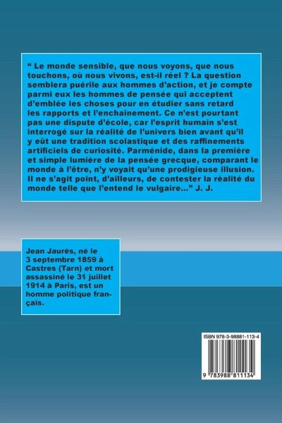 " Le monde sensible, que nous voyons, que nous touchons, où nous vivons, est-il réel ? La question semblera puérile aux hommes d'action, et je compte parmi eux les hommes de pensée qui acceptent d'emblée les choses pour en étudier sans retard les rapports et l'enchaînement. Ce n'est pourtant pas une dispute d'école, car l'esprit humain s'est interrogé sur la réalité de l'univers bien avant qu'il y eût une tradition scolastique et des raffinements artificiels de curiosité. Parménide, dans la première et simple lumière de la pensée grecque, comparant le monde à l'être, n'y voyait qu'une prodigieuse illusion. Il ne s'agit point, d'ailleurs, de contester la réalité du monde telle que l'entend le vulgaire..." J. J.